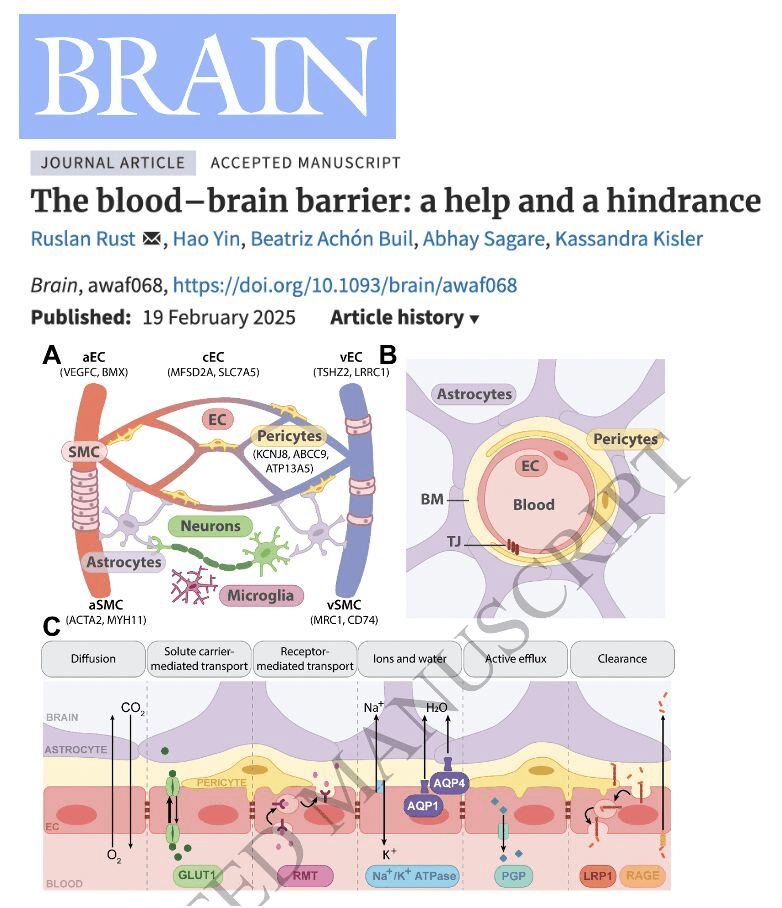Wist je dat er ook een complexe bloed-hersenbarrière is die ons beschermt, maar ook medicijnen en innovatieve gentherapieën kan blokkeren. Rust en collega’s bespreken in het tijdschrift Brain beide kanten van de ‘muur’ die ons brein beschermt.