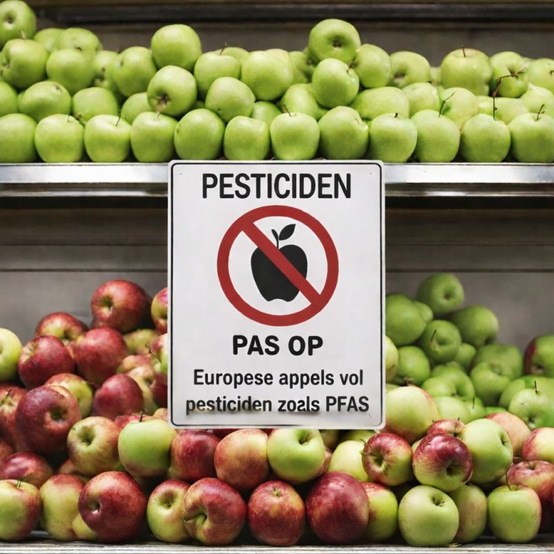 Deze PFAS breken nauwelijks af en kunnen zich opstapelen in mens en milieu. Tegelijk wordt de combinatie-werking van meerdere pesticiden samen nog steeds nauwelijks getest door toezichthouders. 👶 Schokkend: Als deze appels verwerkt zouden worden tot babyvoeding, zou 93% niet eens verkocht mogen worden vanwege te hoge pesticidenresten boven de babyvoedingsnorm (0,01 mg/kg). Appels behoren tot de meest bespoten fruitsoorten — sommige teelten worden gemiddeld ongeveer 30 keer per jaar behandeld met pesticiden.