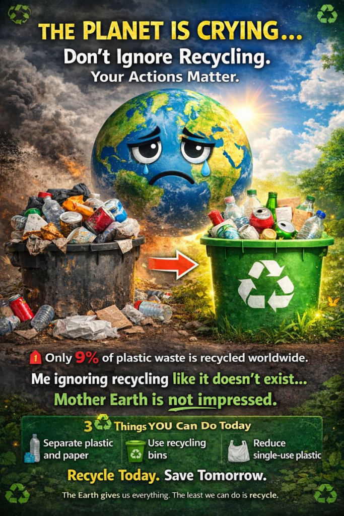 🌍 The uncomfortable truth: • Only 9% of plastic waste ever gets recycled. • Millions of tons of waste end up in oceans every year. • Future generations will inherit the consequences of our convenience.