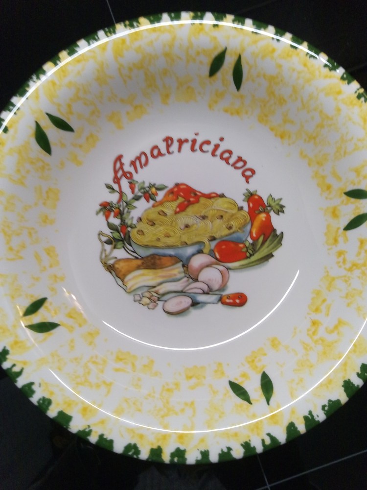 Amatriciana is de naam van een klassieke Italiaanse pastasaus welke is afgeleid van het Italiaanse plaatsje Amatrice. Dit plaatsje ligt vlakbij Rome in de Italiaanse regio Lazio. Voor het originele recept wordt ‘guanciale’ gebruikt, dit is varkensspek uit de wang. Aangezien dit in Nederland zeer lastig is te verkrijgen, wordt er vaak gekozen voor pancetta, wat ook varkensspek is, maar dan van de buik (dit mag ook spekblokjes of reepjes uit een bakje zijn, maar de voorkeur gaat uit van een vast stuk ‘Guanciale’ of pancetta varkensspek wat je bij de slager koopt en zelf snijd!). Over het algemeen wordt er in Italië voor gekozen om dit recept te serveren met gedroogde pasta zoals Bucatini, Rigatoni of Penne. Verse pasta wordt zelden gebruikt in combinatie met Amatriciana saus. Logischerwijs wordt het gerecht afgemaakt met lokale ‘Pecorino Romano’ of met ‘Parmezaan’. Pecorino Romano heeft de voorkeur.