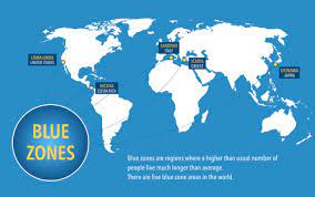 (Bron Wikipedia, Blue-Zones: Blauwe zones zijn afgebakende gebieden waarvan de bevolking een specifieke levensstijl en leefomgeving deelt en waar de mensen meetbaar langer leven. Het concept ontstond uit het demografische werk van Gianni Pes en Michel Poulain naar regionale concentratie van honderdjarigen op Sardinië. Auteur Michel Poulain en onderzoekjournalist Dan Buettner identificeerden hotspots van lange levensduur in de wereld. In populair wetenschappelijke boeken besprak Buettner zeven zones)