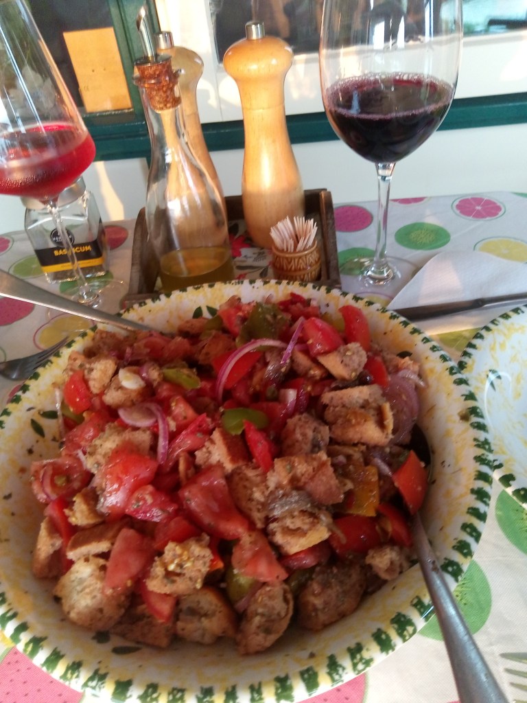 Dit sublieme gerecht is echt verrukkelijk. Panzanella! is een traditionele Toscaanse broodsalade waar echt oud brood voor gebruikt wordt. Dus brood uit de diepvries, oud laten worden en…… lees maar verder,
