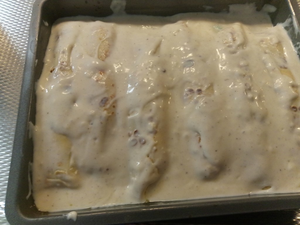 Maak eerst de Fritelle / Pannenkoeken volgens recept op ‘Zelf maken van Brodo tot Antipasti’. Maak er zes per persoon. Maak ook de Besciamella / Bechamelsaus volgens recept op ‘Salsa’ .