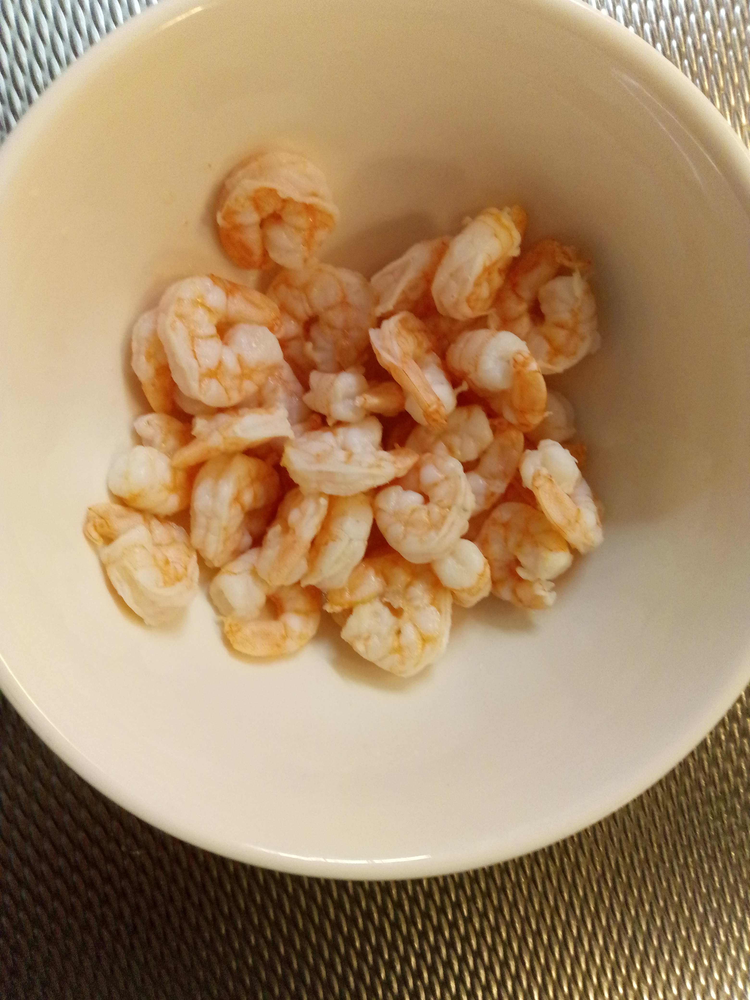 500 gr garnalen (mogen ook nog in pantser zitten) of mantisgarnalen (bidsprinkhaankreeften), 1/2 citroen, handje vol peperkorrels, 1 knoflook, 4 grote tomaten, 1 rode chilipeper, 300 gr Pipe Rigate, extra vergine olijfolie, basilicum (mag ook droge uit de pot zijn), zout, zwarte peper