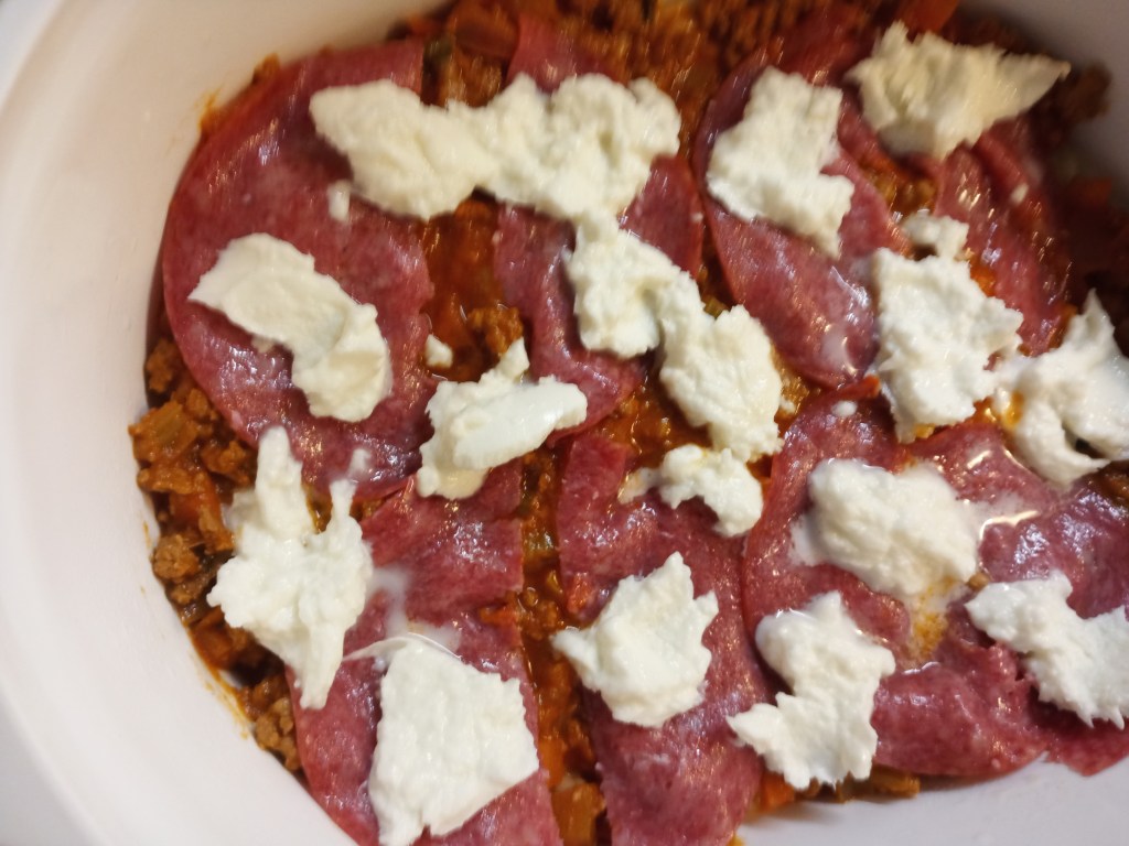 Neem een grote ovenschotel en boter ze in. Leg onderaan een laagje risotto, daarbovenop een laagje ragout, salami en mozzarella, herhaal dit nog een keer. Als laatste maak je nog een laag en als je nog mozzarella over hebt leg je deze als laatste, maar je kan de bovenkant ook afdekken met een flinke laag Parmezaan zodat de bovenkant een mooie krokante korst krijgt.