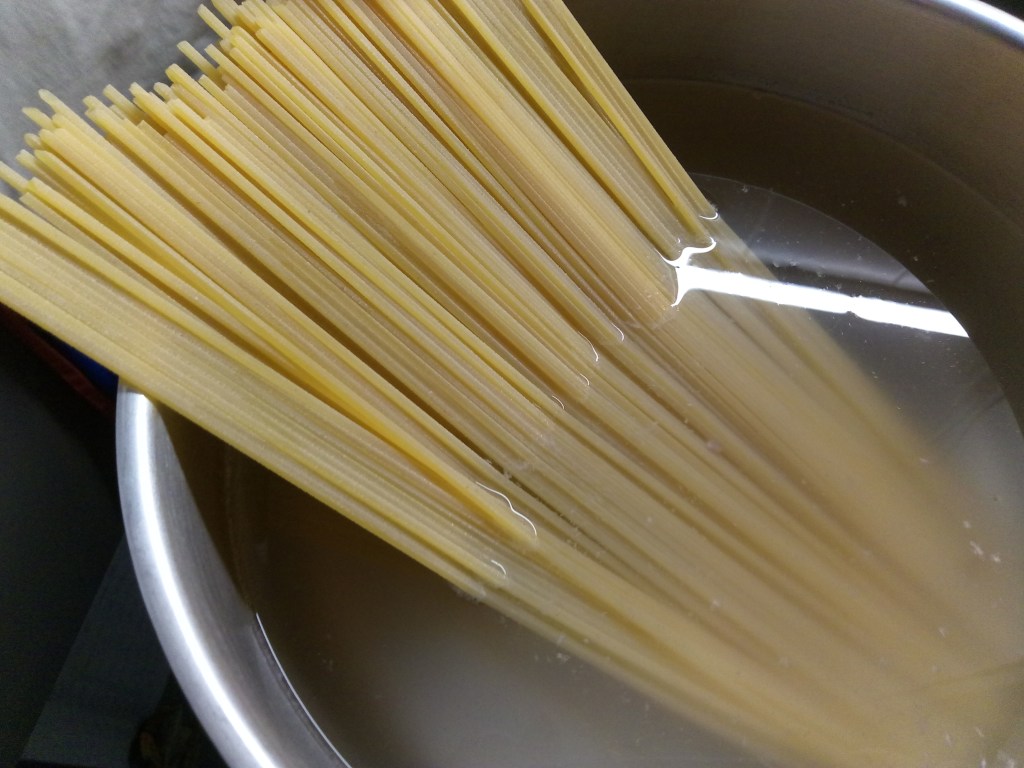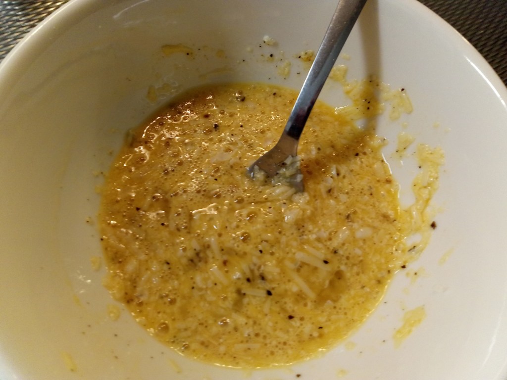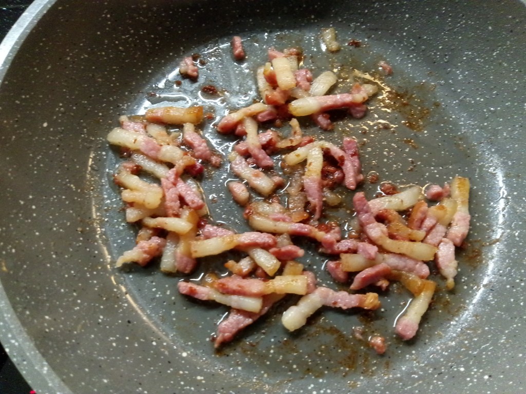 2 eieren, zwarte peper, 6 el geraspte Parmezaan of pecorino , 100 gr spek van de wang of als je dit te duur vind neem je gewoon spekblokjes, 200 gr spaghetti, That’s all!