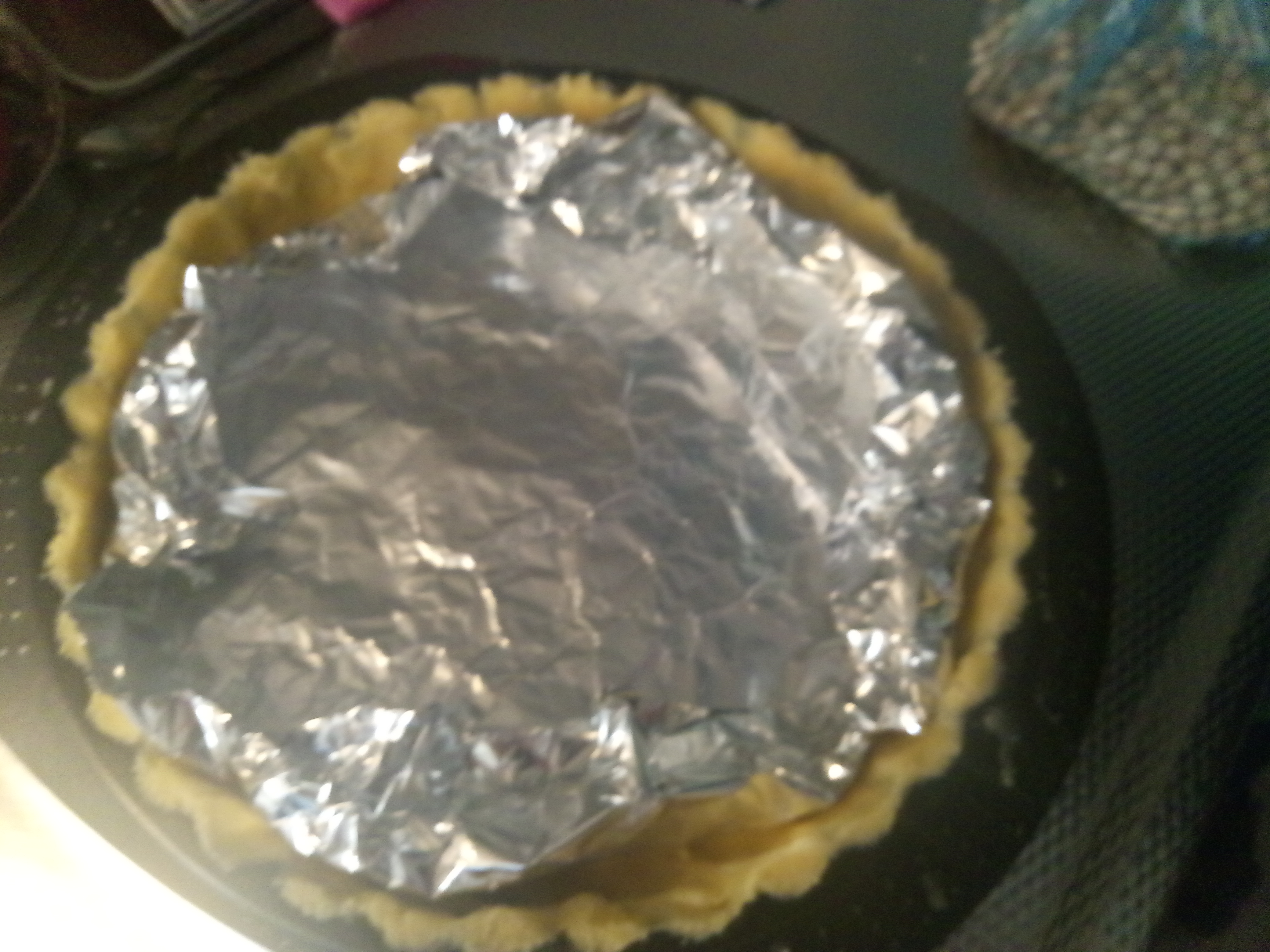 Aluminiumfolie en bakbonen om blind te bakken en zorg dat de roomboter zacht is!