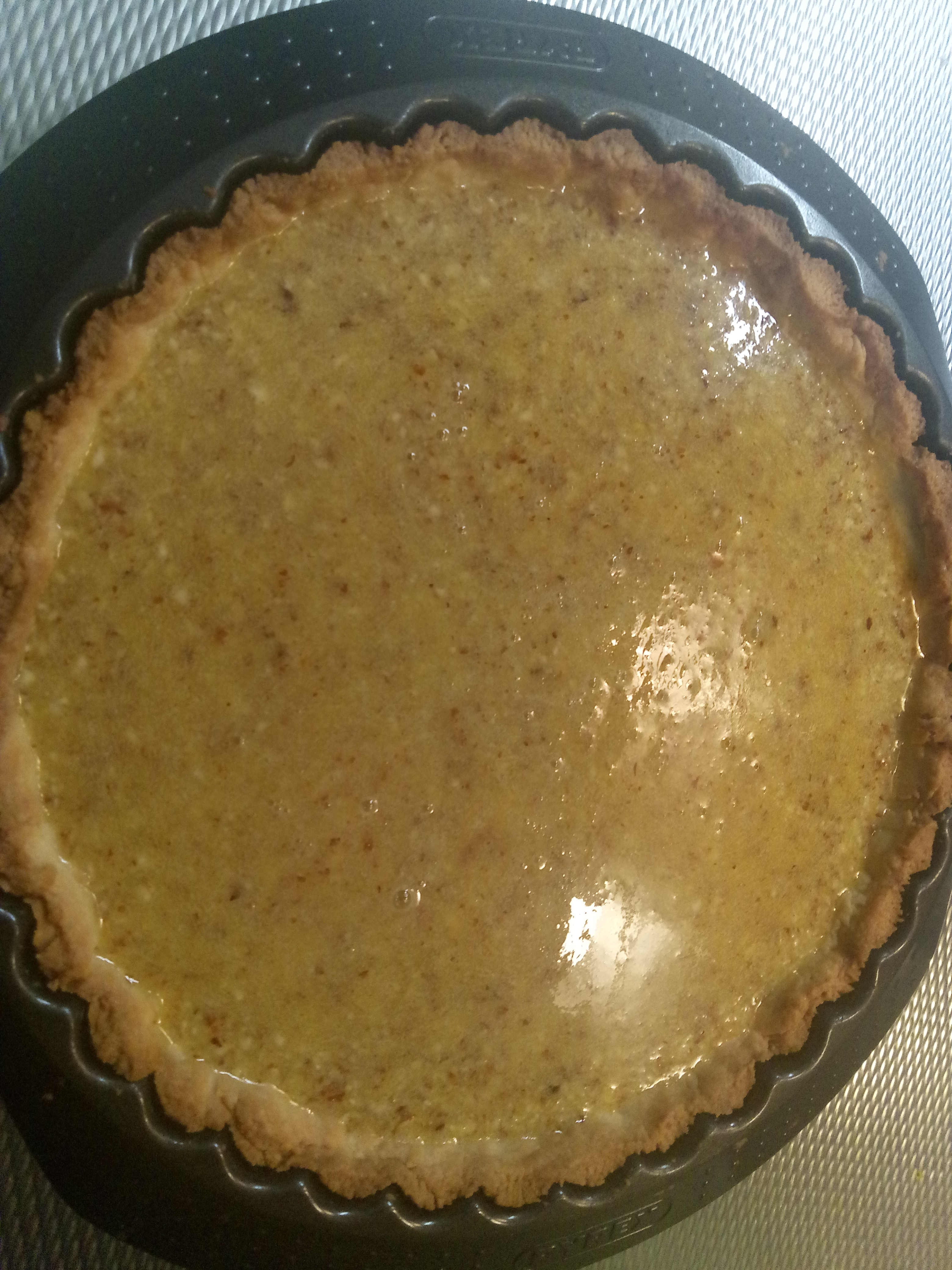 Citroen-amandelvulling: 4 grote eieren losgeklopt, 120 gr fijne kristalsuiker, geraspte schil en sap (mag ook een klein glaasje limoncello zijn, is de smaak anders, voller) van 3 citroenen, 120 gr roomboter gesmolten, 120 gr gemalen amandelen, geklopte slagroom voor erbij