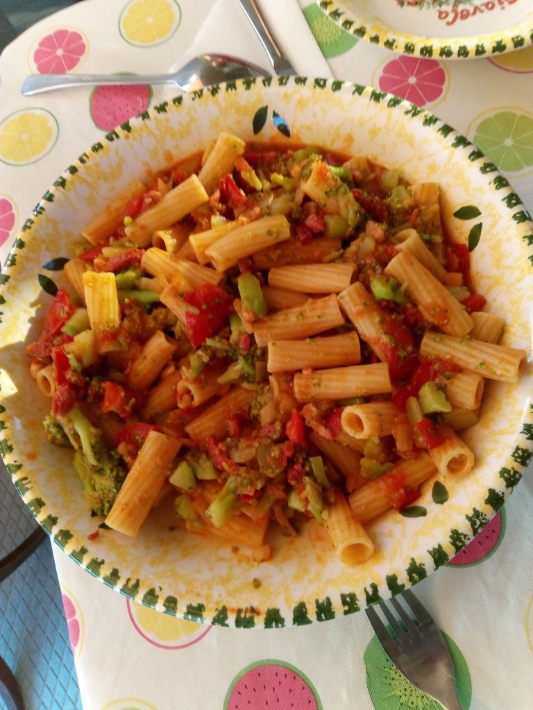 Tortiglione kan je kopen bij de Plus. Is bijna gelijk aan Rigiatoni en een mooie tube waar de saus lekker gaat inzitten.