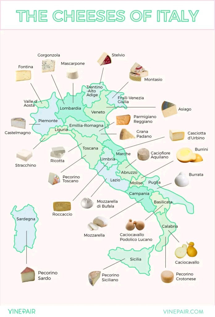 Gorgonzola, Ricotta, Mascarpone, Talegio, Provelone (deze allemaal als het recept er om vraagt).
