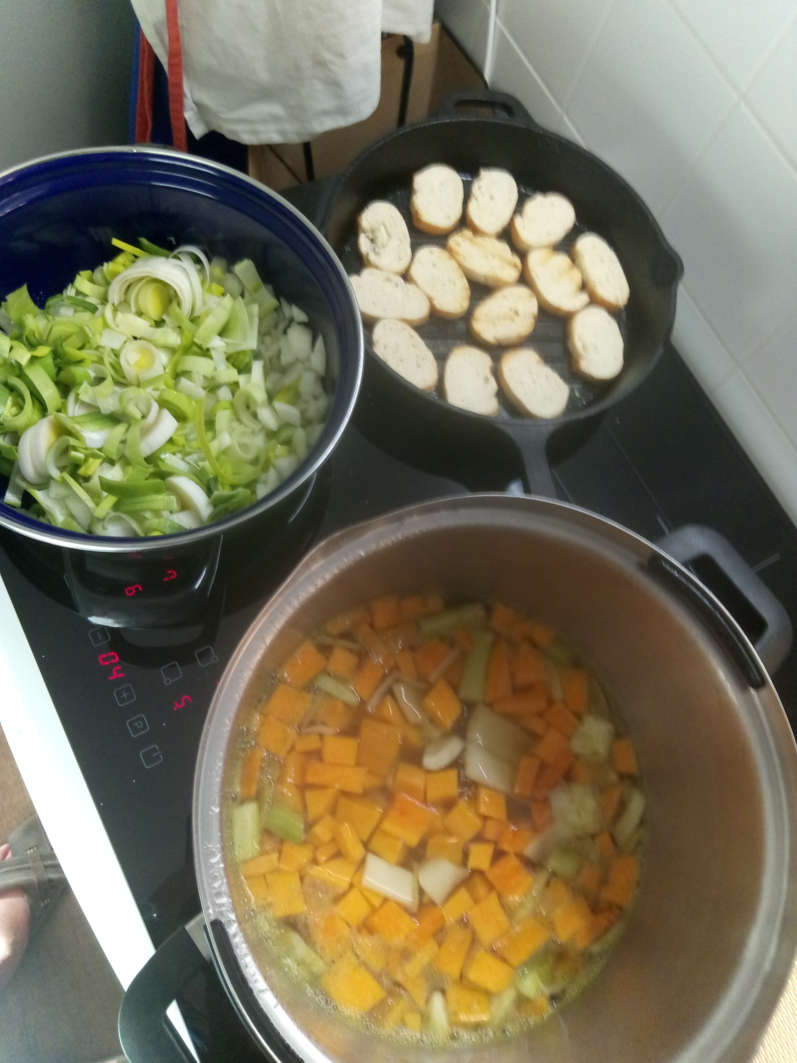 1 venkelknol, 1 zoete aardappel, 1 courgette, 1 prei, 1 ui, 1 knoflook, 1 handvol peterselie, een handvol basilicum, peper, zout, 1 ltr groentebouillon